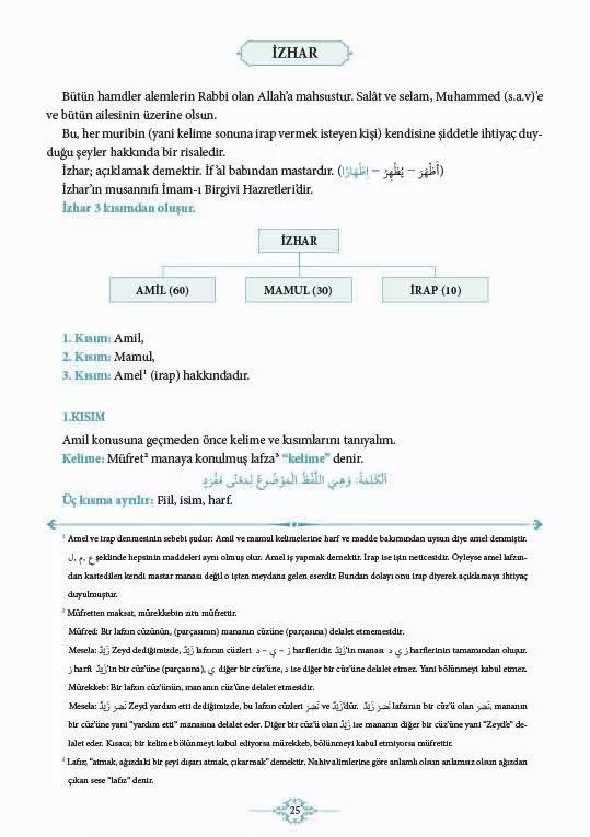 İmam-ı Birgivi asıl adıyla Takiyuddin Mehmed bin Ali'nin hicri 10. asrın başlarında kaleme aldığı Avamil kitabının şerhi olan İzhar kitabı nahiv öğrenmek icin temel eser kabul edilmektedir. Günümüzde bu usulde eğitime devam etmek isteyenler bazı zorluklarla karşılaşmaktadır. Bu sıkıntılarında onlara yardımcı olmak ve Arapça'yı daha kolay anlayabilmeleri için çalışmamızı, İzhar kitabının özünden ayrılmadan, şemalar ve çizimlerle görselleştirerek hazırladık.