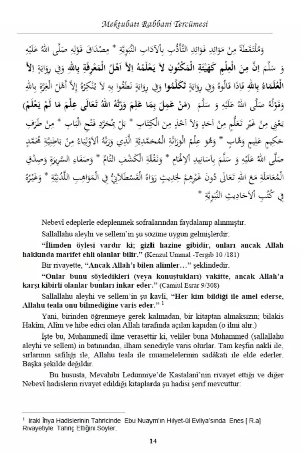 Kelime Manalı Mektubatı Rabbani Tercümesi 1.Cilt