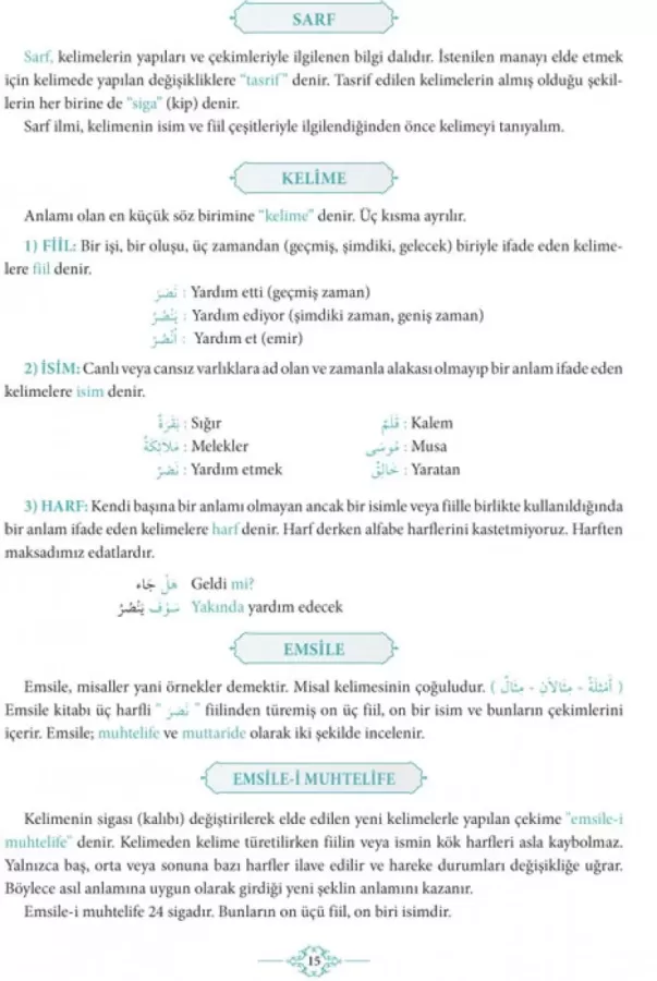 Bu kitabı bitirdiğinizde Arapça'daki fiil ve isimlerin girebileceği 24 farklı kalıbı ve bunun nasıl yapıldığını ve Kur'an-ı Kerim'deki Emsile'yle alakalı olan tüm kelimeleri öğrenmiş olacaksınız.