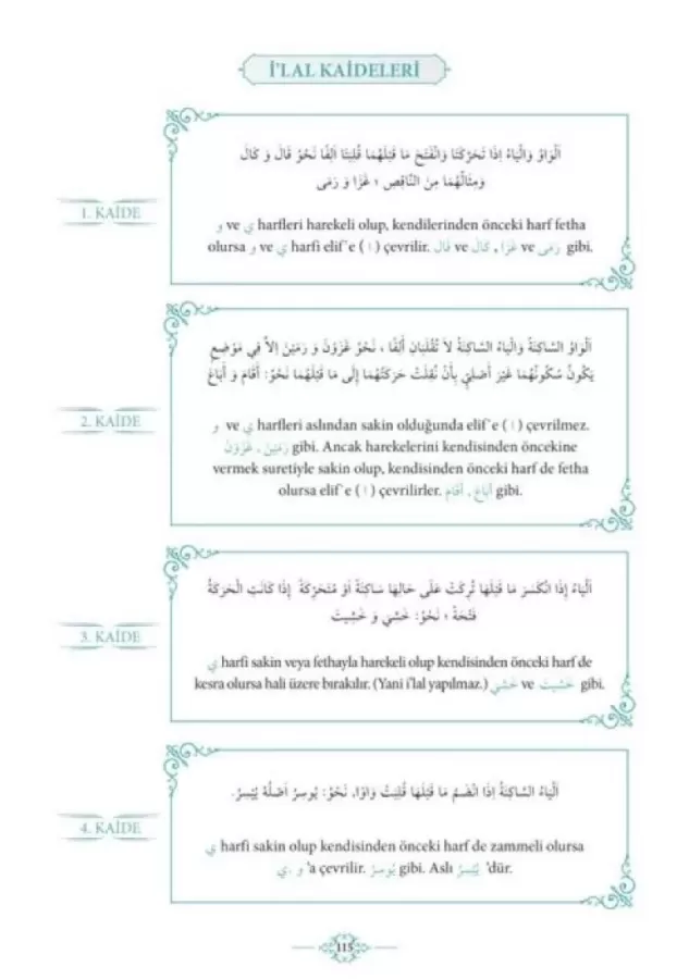 4. Bölüm: Aksam-ı Seb'a, mu'tel, muzaf, mehmuz babı ve i'lal kaidelerini ihtivâ etmektedir.