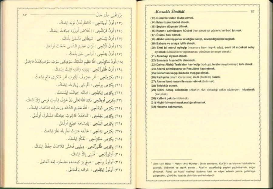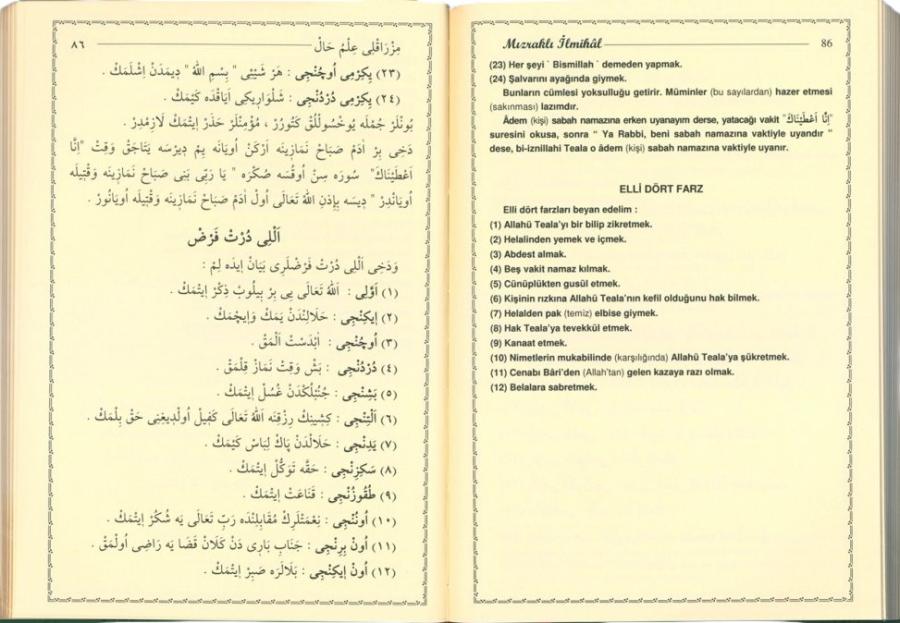 Açıklama Mızraklı İlmihal Risaleler ve Tercümeleri Osmanlıcaya Giriş/ İmân ve İslâm Risâlesi/Mızraklı İlmihal/ Sirâcü'l Müttekin/ Karabaş Tecvidi/Nesefi Akaidi/Hızbu'l Bahr ve Seçme Dualar Atalarımız Arapçaya, bilhassa Kur'an lisanı olması sebebiyle yakınlık duymuşlardır. Rasûlullah (s.a.v) cennet lisanı olarak haber verdikleri Arapça ve Farsça, Osmanlıca içine yerleşerek adeta türkçeleşmişti. Bu büyük lisanı tekrar eskisi gibi yaygın hale getirmek ve atalarımızdan kalan mirasa sahip çıkmak için, bu lisanın herkes tarafından öğrenilip bilinmesi lazımdır. Mızraklı İlmihal, İslam dininin esaslarını ve prensiplerini ortaya koyan, her seviyeden insanın anlayacağı bir üslupla yazılmış kısa ve öz bir eserdir. Alışılagelmiş bir ilmihal sistematiğine sahip olmasa da; iman, ibadet ve ahlak kurallarının hayatın ayrılmaz bir bütünü olduğunu ifade eden, kendine özgü bir konu sıralaması vardır Osmanlı döneminde mahalle mekteplerinde başlangıç seviyesinde okutulan Mızraklı'nın, birçok kimse tarafından okunup ezberlenmei, selis ve akıcı üslubu ile alakalıdır.