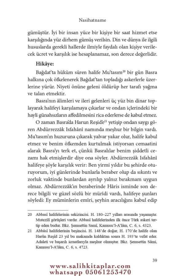 Bölümler şunlardır: 1. Akıl 2. İlim 3. Cehaletin kötülüğü 4. Konuşma âdâbı 5. Hikmetler, mesel ve öğütler 6. Dostluğun gerektirdiği hâller 7. Münafıklık ve düşmanlığın zararları 8. Çocuğun eğitim ve öğretimi 9. İdarecilik ve beylikle ilgili hususlar 10. Beylere ve idarecilere hizmet etmenin yolu 11. İyiliğin faydaları ve kötülüğün zararları 12. Sabır ve acelecilik 13. Güzel ve kötü huyların sonuçları. 14. Sır saklamak 15. Dünyaya karşı hırs ve aç gözlülük.Stok Kodu:9786054791644Boyut:14*20Sayfa Sayısı:264Çeviren:Prof. Dr. İbrahim Kaya - Osman BayderKapak Türü:Karton KapakKağıt Türü:Kitap KağıdıDili:Türkçe