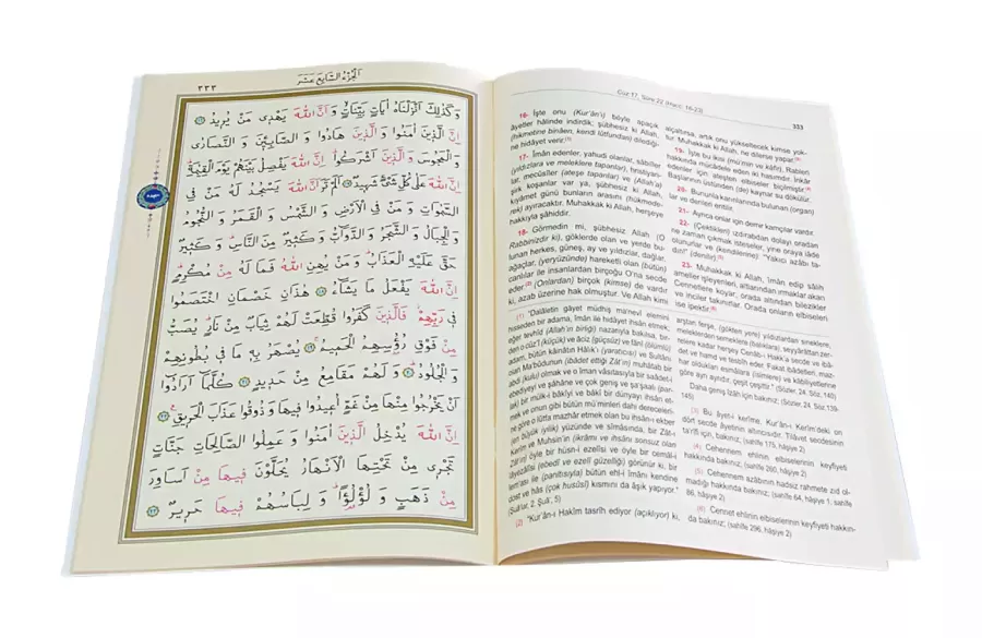 - Meal Tipi:Karşılıklı Meal (Bir sayfa Arapça Kur'ân metni karşı sayfa Türkçe Meali)